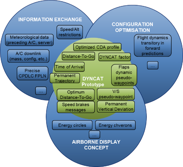 • DYNCAT highlighted the impact of current approach ATM operations in the Terminal Manoeuvring Area, orTMA, on environmental pollution, cost effectiveness and safety and quantified the potential for environmental impact (noise, CO2 emission) reduction through better communication between ATC and the flight deck.