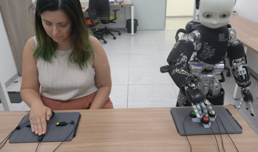 The scientific objectives of the outgoing phase were to identify temporal adaptation and anticipation mechanisms in human-human interactions characterized by errors. This objective aimed to answer the question: What are the mechanisms that allow humans to stay “inside the loop” when interacting with other human agents? A key outcome was supposed to identify how and to which extent temporal adaptation and anticipation mechanisms are crucial to ensure the co-agents' performance monitoring and its successful prediction of and recovery from errors. To this end, the ER has designed and implemented an experiment using musical paradigms aiming to evaluate how a leader-follower pair of individuals adapt their performance to reduce the negative impact of errors on coordination during a musical task. Results showed when errors were included in the task, participants’ performance was characterized by lower variability in asynchrony and higher interpersonal coupling compared to correct sequences, suggesting that humans succeed in stay-in-the-loop by adopting a top-down control over sensorimotor mechanisms of coordination to reduce the impact of anticipations. The scientific objectives of the returning phase were to develop a module for humanoid robots that ensures real-time coordination and (iv) test its efficiency in reducing the OOTL. These objectives aimed to answer the question: Does endowing robots with mutual adaptation improve users’ performance of monitoring their own and robot's actions, as well as the outcome of their combined actions when performing joint actions together? To this end, the ER has implemented the human-inspired computational model for temporal adaptation and anticipation (ADAM) on the humanoid robot iCub. Specifically, the ER designed and implemented a study aiming to evaluate whether implementing in robots temporal adaptation and anticipation processes that facilitate coordination in humans can reduce the OOTL phenomenon in HRI. To this end, human participants were asked to play a musical joint tapping task together with the iCub robot. Specifically, two versions of the task were developed. A version in which the iCub played always the same sequence played by human participants (Correct task condition) and a version of the task in which in 30% of the repetitions, the iCub played a mismatching sequence (Erring task condition). For both task conditions, we implemented the ADAM and integrated it with the robot to control iCub’s tapping behaviour. In both task conditions, 5 different settings of the ADAM model were implemented, two of them relying only on the adaptive module and three relying on the joint module. Results showed that that endowing robots with temporal adaptation and anticipation mechanisms allows humans to stay in-the-loop, in two different ways. Firstly, it allows users to constantly update their internal model of the robot to reduce the prediction error about iCub’s performance, thus resulting in higher synchronization and more strength in coupling for those conditions in which the robot is run based on human-like estimates. Secondarily, by increasing self-other integration and the perception of shared agency.