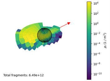 A second progress is the development of a novel ejecta cloud density-based model that features a probabilistic approach. This allows innovative sampling techniques that improve the robustness and speed of the simulations.