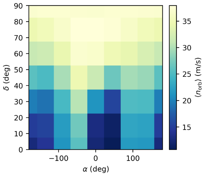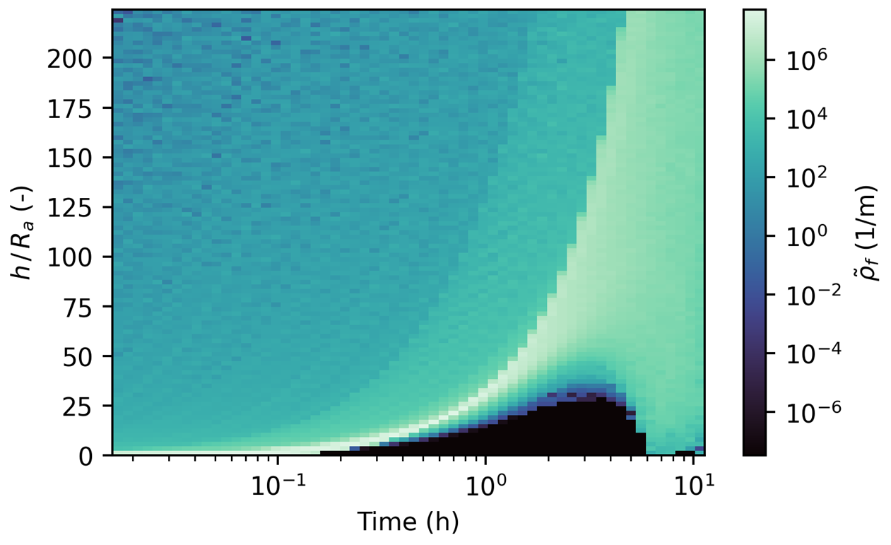 We also studied the long-term behaviour of the ejected particles. This is important to assess the availability of samples after several days, allowing easier planning of mission operations. We characterised the number of available particles, their size, and residence time as a function of impact location (Figure 8). This analysis's results were presented at the 73rd International Astronautical Congress in September 2022.