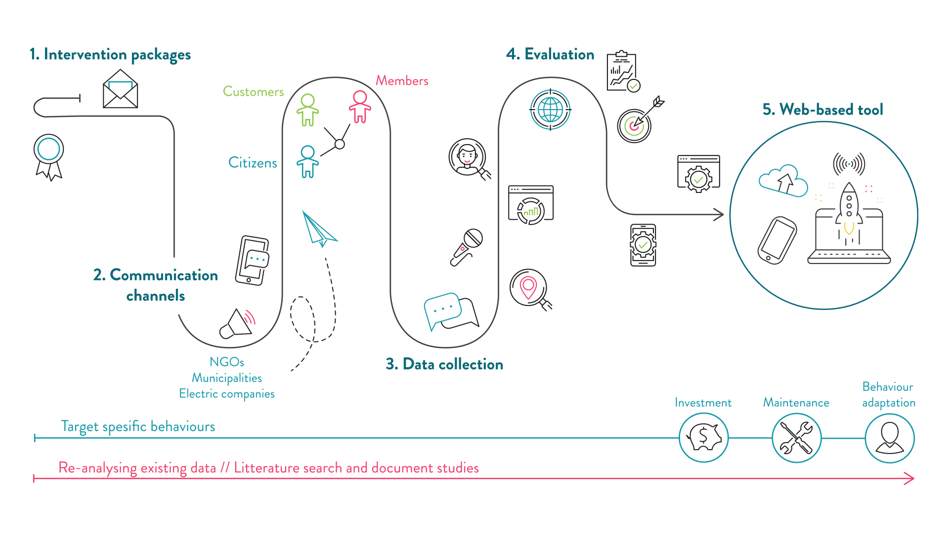 ENCHANT aims to test different packages of evidence-based interventions in large-scale tests comprising millions of European consumers across 6 countries and real world conditions. An important contribution of ENCHANT is to investigate the effect of different interventions on a wider variety of energy-related choices, comprising (1) investment behaviours; (2) maintenance behaviours; and (3) adjustment of everyday behaviours and behaviours in the private sphere. ENCHANT will assess interventions packages using of a variety of real-life communication channels, distributed by several different types of institutions and organisations who are already active in the energy domain across six different European countries. ENCHANT aims to test the effect and cost-effectiveness of the different channels to provide evidence about which options work best in the different scenarios. ENCHANT will test intervention packages in different contextual conditions in countries across Europe under realistic conditions, acknowledging boundaries set by economy, regulations, and market conditions. Impact will be measured by developing a series of key performance indicators for the project’s overall effects – in terms of energy efficiency enhancement, energy (and monetary) savings, GHG emissions reduction, and not the least well-being of recipients. ENCHANT will further investigate how efforts can be best upscaled and replicated to maximize its impact. The results will be translated into a web-based decision tool. ENCHANT will include data from different social energy science disciplines to develop, test and verify the intervention impacts. ENCHANT aims to use therefore multidisciplinary knowledge. Furthermore, the project adopts a transdisciplinary approach combining multidisciplinary knowledge with experience-based knowing to engage with problem-solving in the context of application. To do so, the project involves a large number of user-partners deeply involved in project activities. ENCHANT’s user-partners will not only deliver the various intervention packages, but contribute as well with knowledge from their past and current experiences, activities and know-how of customers of energy companies, municipal citizens and members of NGOs in the energy domain. Such a variety in types of user-partners will provide both complex and contextual knowledge of how energy behaviour can be affected and not the least how energy interventions can be provided outside behavioural laboratory situations.