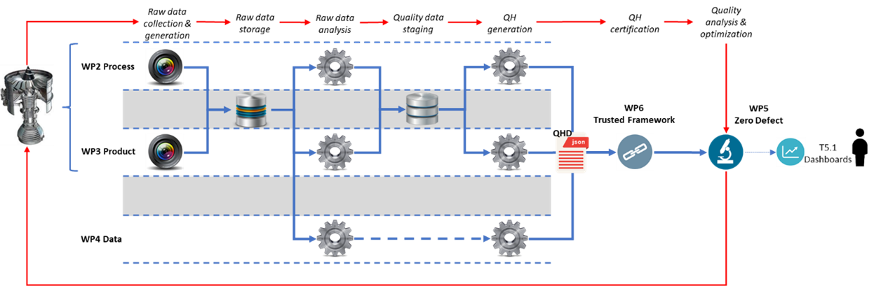 The Zero Defects goal optimizes product quality with AI for ZDM, delivering solutions at the process level. The Trusted Framework is deployed on Hyperledger Fabric, allowing PPD Hallmark sharing in the supply chain.