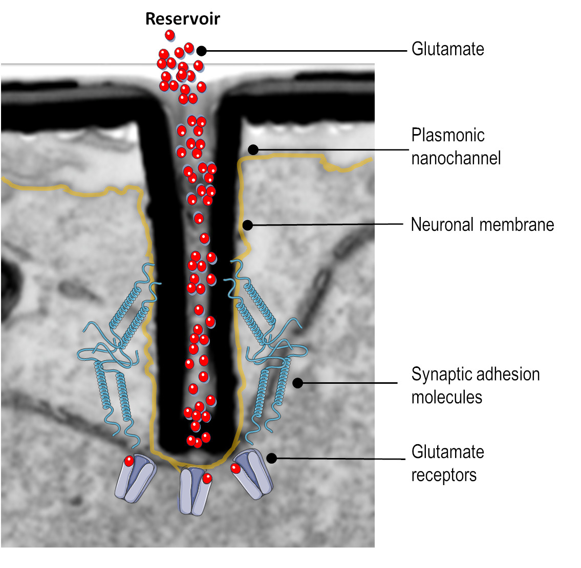This project targets to stimulate neurons with a drastically novel method that can go beyond single cell resolution to recreate lost synaptic connections with "hybrid nanosynapses": surviving retinal neurons will be interfaced with plasmonic nanochannels filled with smart polymers able to release neurotrasmitter in response to optical stimuli.